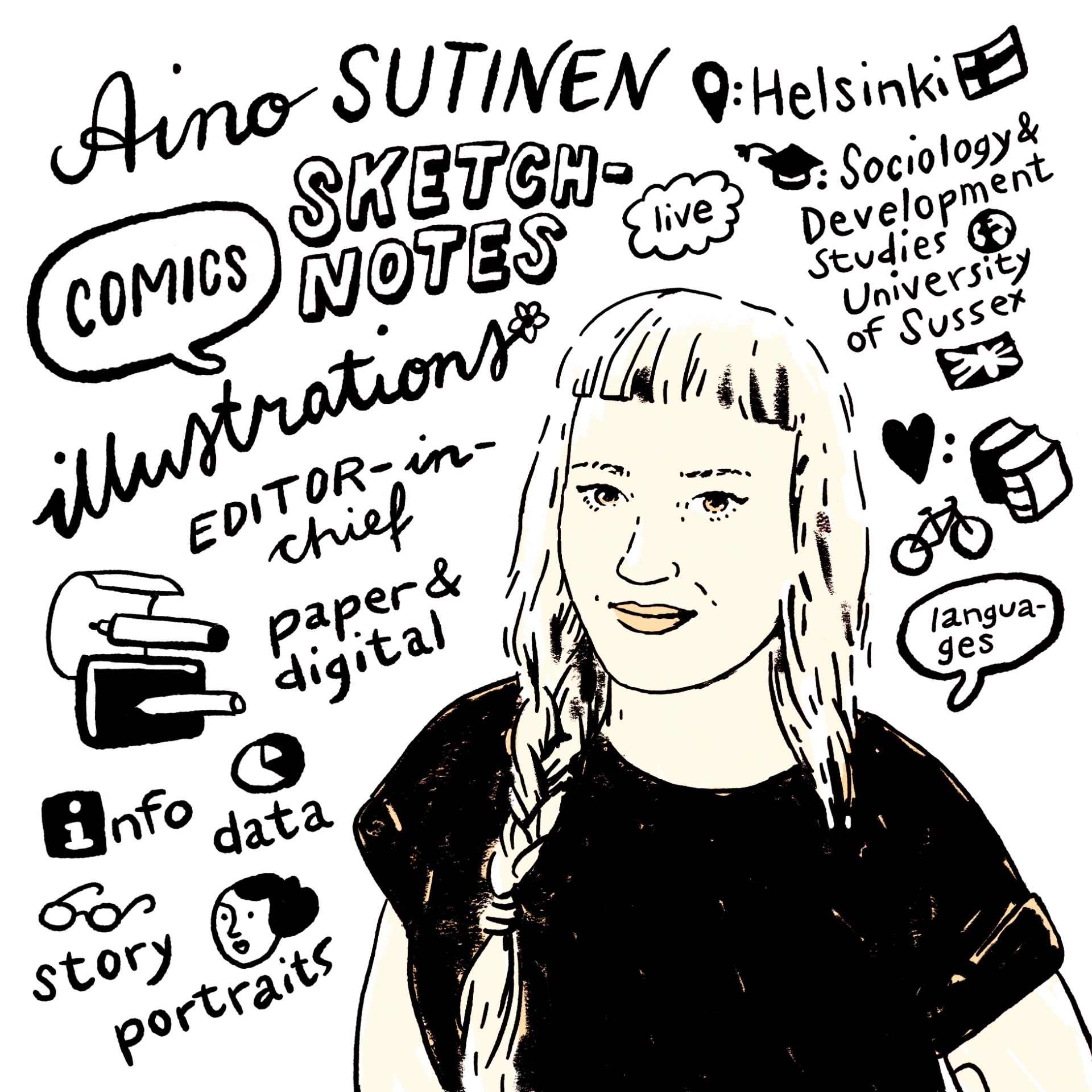 Mly focus is on visualising information, societal themes, science communications, combining elements from illustration and comics... I can also do live events as a sketchnote artist (in other words, scribing).