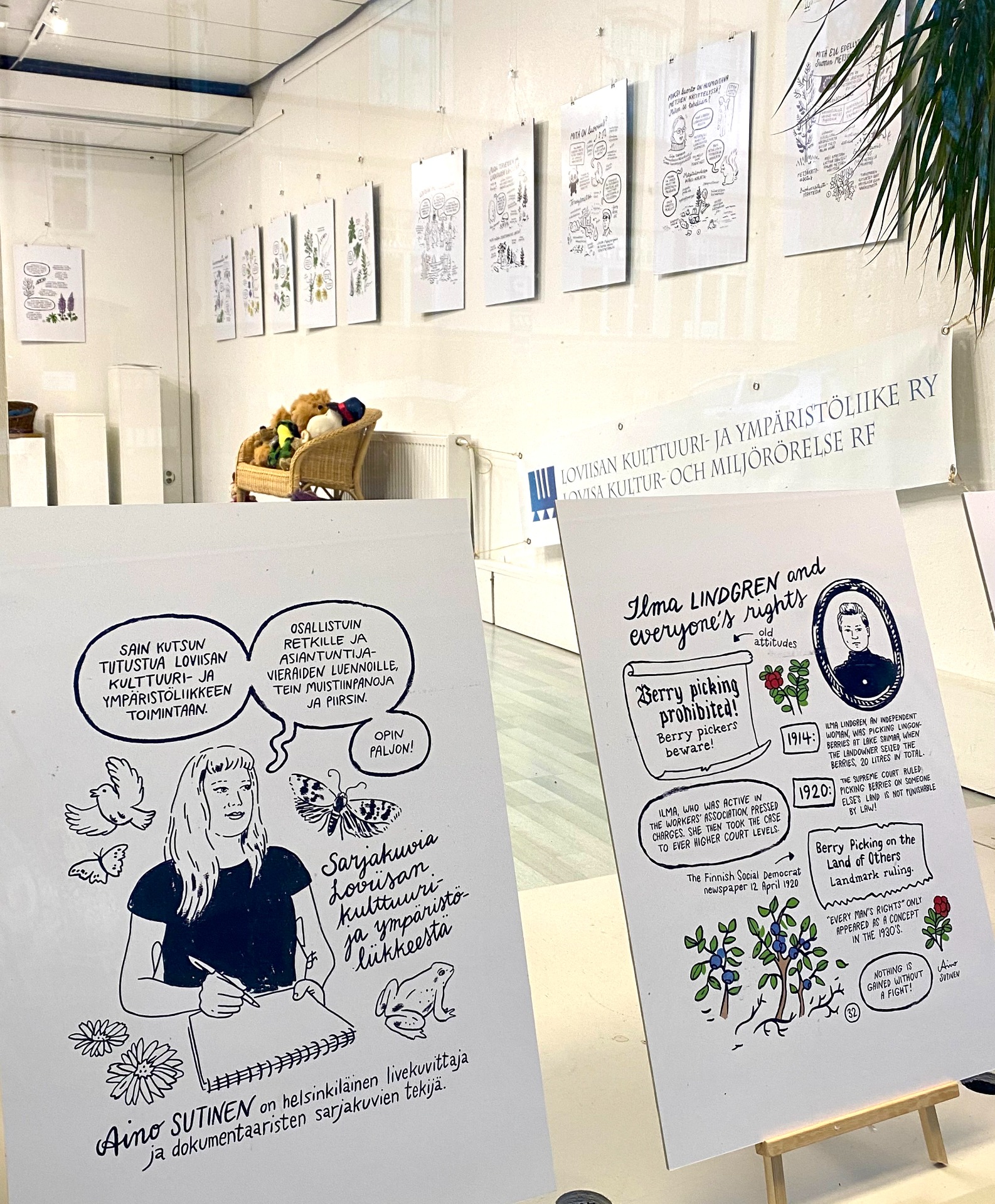 Loviisan kulttuuri- ja ympäristöliike tilasi minut tekemään dokumentaarisia sarjakuvia ja infokuvituksia heidän ympäristöaktivismistaan ja useista asiantuntijaluennoista.