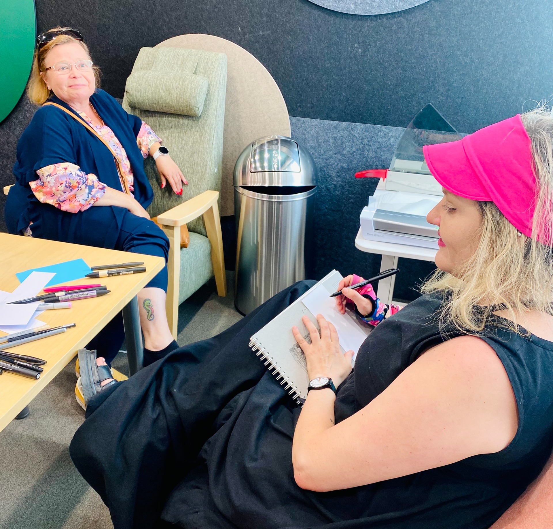 Valtioneuvoston Lasten oikeuksien päivän tapahtuman livekuvitukset (2019). Valokuva: Kosti Keistinen/Valtioneuvoston kanslia, Creative Commons BY 2.0.