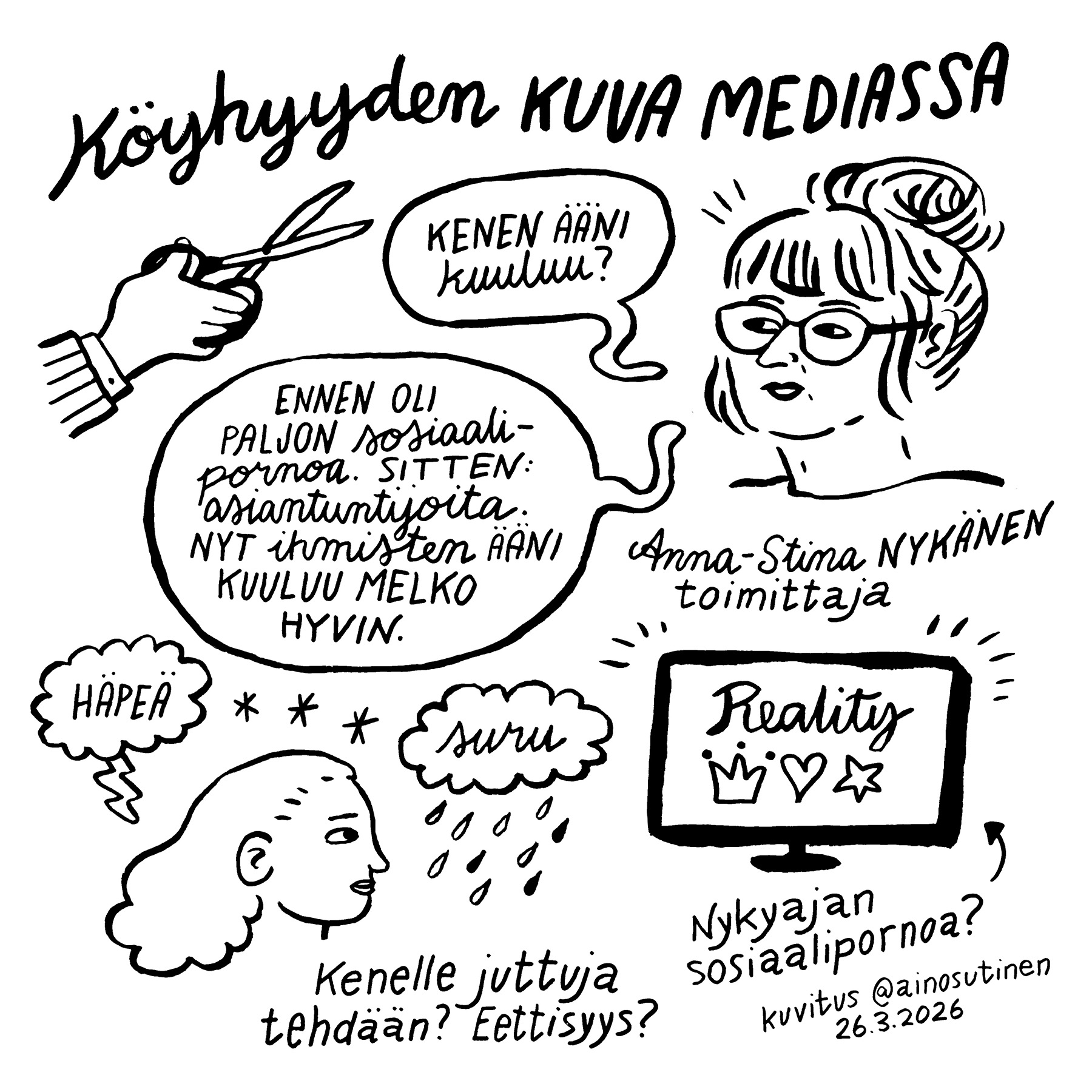 Livekuvitusten sarja tapahtumaan köyhyydestä mediassa (Kulttuuria kaikille, 2026).