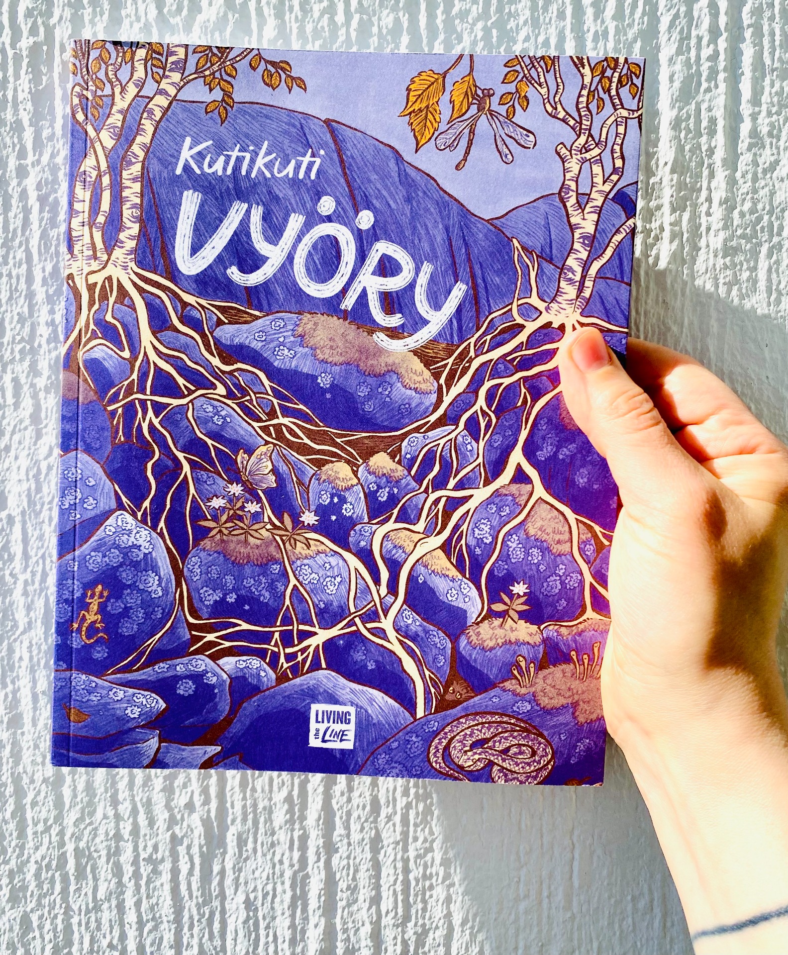 Kutikuti-kollektiivin kansainvälinen antologiasarja ilmestyy yhtäaikaa Suomessa, Belgiassa ja Yhdysvalloissa kolmella kielellä. Olen mukana kirjasarjan kolmannessa osassa Vyöry (2026), ja tein pienen dokumentaarisen sarjakuvan Helsingin Stansvikin metsäaktivisteista. Kirjan voi ostaa esimerkiksi täältä.
